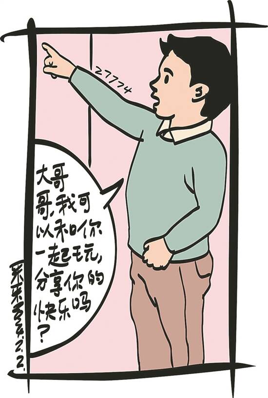 正浮想联翩时,身后传来一个稚嫩的声音:“大哥哥,我可以和你一起玩,分享你的快乐吗?”原来是一名小男孩,有着一双湿漉漉的大眼睛。陈鹏摸了一下他的头,说:“你还未成年,不能玩彩票哟。”随即问他叫什么名字,家住哪里。 (刘琪瑞)