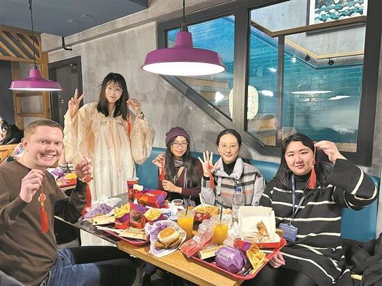 中餐厅里,高高挂起的红灯笼不仅装点了喜庆的氛围,也照亮了王悦瞩内心的归属感。“从故乡到异乡,我们把祖国的文化‘带出去’,同时,祖国的文化好像一直在召唤着我们,将我们带回她的身边,书写新的‘团圆’故事。”