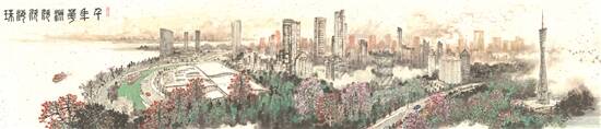 羊城晚报讯 记者马思泳、通讯员海宣报道:在辞旧迎新之际,广州市海珠区特邀陈金章、郝鹤君、陈永锵、方楚雄等20位岭南国画名家,以《千年花洲·欣欣海珠》为主题,创作了一幅跨越千年时空,还原海珠花史、花市的国画长卷。