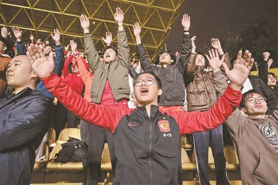 看台上的球迷非常尽兴 羊城晚报记者 钟振彬 摄
