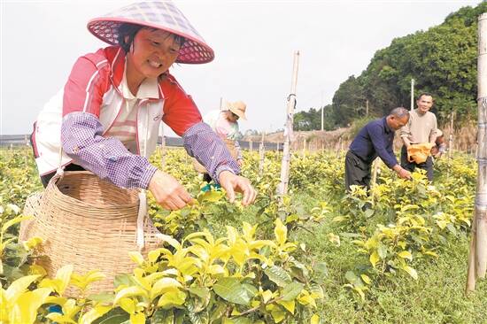 羊城晚报讯 记者杨再睿、通讯员刘烁摄影报道:立春过后,天气回暖,新兴县茶园竞相吐露新绿,茶农们纷纷抢抓时节和晴好天气采摘春茶,收获着春天的喜悦。