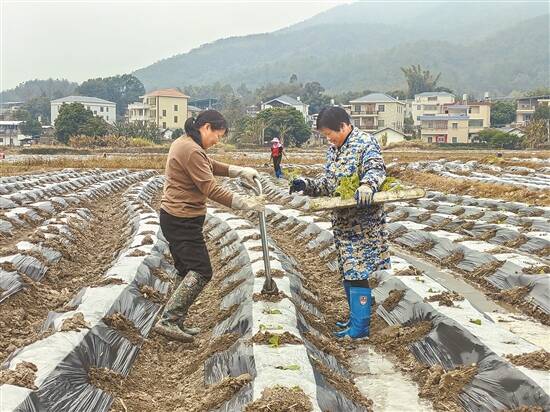 “株距密度要控制在50厘米左右,栽种距离会直接影响到烟株后期成长及最终烟叶质量,为了保障合理密植措施落实到位,在移栽期间,我们的技术人员每天都会到田间地头去指导。”广东烟草梅州市有限公司平远县分公司上举烟叶工作点烟叶技术员黄福荣告诉记者,按照以往惯例,立春前后,气温回升,能有效避免寒潮对栽后烟苗的伤害,正是烟苗移栽的最佳时候。“因为种植烟叶的经济前景好,我们村集体通过流转、整理撂荒耕地种植烟叶,目前全村烟叶种植面积已发展到410多亩。”东石镇锡水村党支部书记、村委会主任曾祥甲介绍,种植烟叶解决了农村土地撂荒和剩余劳动力的问题,良好的经济效益也充分调动了农户种植积极性。