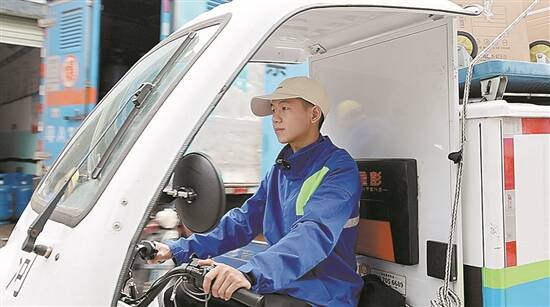 杨保辉正在派送包裹 羊城晚报记者 沈钊 摄