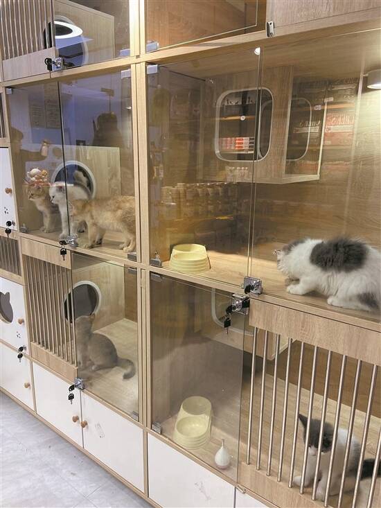 在花都区,宠物店的生意同样火爆。与沐沐不同,阿岑的店只能寄养猫咪。“我们这里主要是做猫咪相关服务的,也只能寄养猫咪。50元一天,店里能放得下20只猫,现在还有3个空位。”