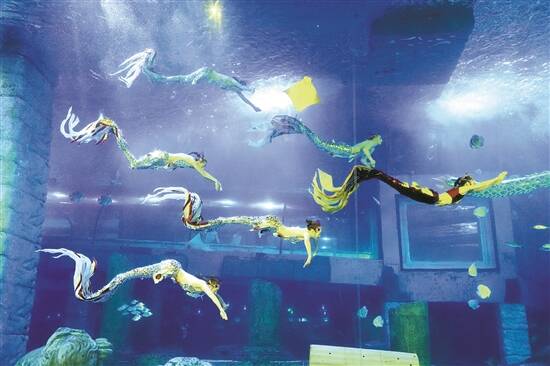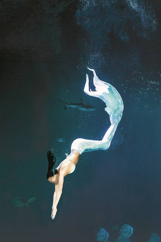 发如海藻,肤如莹玉,关于人身鱼尾的物种想象——东方有滴泪成珠的鲛人,西方有幻化成泡沫的美人鱼。如今,这种神秘族群已不只存在于传说中,更出现在各大海洋馆里。水下表演者们穿着特制的服装,化身“美人鱼”,与群鱼嬉戏,与游客互动,也随着音乐翻转腾挪,做出花样动作,鱼尾摆动,美不胜收。在即将到来的春节,将又是美人鱼们最忙碌的时刻。