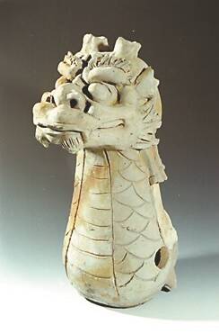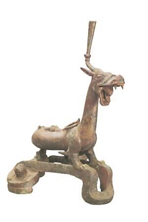 鸱吻,是古代大型建筑正脊两端的饰物,初时称蚩尾。蚩尾是一种海兽,尾巴翘起过头,能激浪降雨,寓意能辟除火灾。该件龙首鸱吻造型栩栩如生,龙兽挺立昂首,双目圆瞪,口微张,唇下有两络短须,头顶一双短角,须发向后,身刻龙鳞纹,造型温驯,乃南汉遗物中不可多得的精品。
