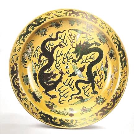 许之衡的《饮流斋说瓷》中写道:“瓷之绘一龙一凤者,大抵皆历代君主大婚时所制,以志纪念者也。”所以,常见的御瓷之中多装饰一对或二对龙凤纹。该器物上便有一龙一凤,寓意吉祥。