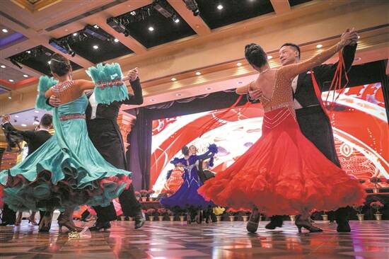 舞会现场衣香鬓影、裙摆飞扬,处处洋溢着新年的喜悦。华尔兹、伦巴、牛仔等不同舞曲轮番响起,宾客在舞池中尽情舒展。在舞会的尾声,全场宾客在专业舞者的带领下走进舞池,在“舞动桑巴”的接龙游戏中,用欢快的舞步迎接龙年的到来。无论是舞林高手还是舞蹈“萌新”,无论是白发苍苍还是青春少艾,人们都能在新年舞会中收获快乐。