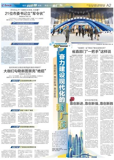 全力以赴抓创新,首先体现在大会安排的细节里。从大会地点来看,今年全省高质量发展大会移师“创新之城”深圳,既紧扣“科技创新”主题,亦对深圳向外联接港澳、向内引领示范带动全省加快实现创新驱动发展寄予厚望。从大会议程来看,上午举办全体大会,下午围绕推动“百千万工程”落地见效、加快现代化产业体系建设、深入实施创新驱动发展战略、加强粤港澳人才协作、发挥金融“活水”作用等主题展开分组讨论。和去年相比,分组议题更加突出“科技创新”,目标就是要加快发展新质生产力,使广东高质量发展新动能更强、新优势更突出。