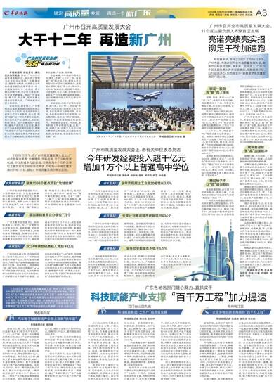 2月18日召开的全省高质量发展大会,吹响了广东“加快产业科技互促双强,走好高质量发展之路”的新的冲锋号角。“百千万工程”是广东推动高质量发展的“头号工程”,加快产业科技创新成为“百千万工程”强有力支撑是与会者的强烈共识。乘势而上千帆竞,策马扬鞭正当时,就此,羊城晚报记者深入多地采访,现场感受广东各地各部门凝心聚力、真抓实干,以科技赋能、产业支撑推动“百千万工程”取得新进展的火热情景。(黄磊 朱嘉乐)