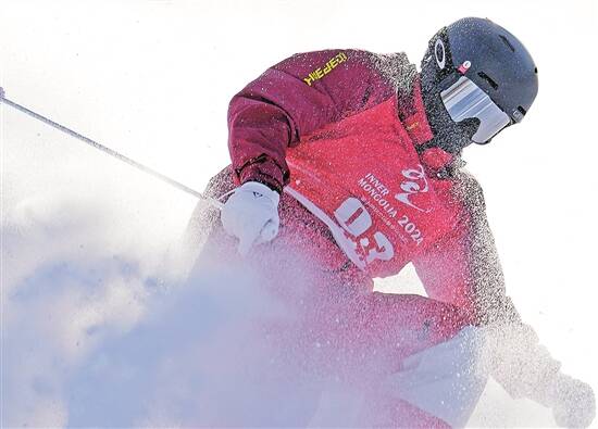 除了冷,其实还有心理上的怕。雪上技巧项目又称“猫跳”,要求滑雪者在布满小雪丘的雪道滑行和回转,并在高速滑行中完成一次跳跃腾空的空中技巧动作,选手必须克服内心的胆怯,表现出积极的进取精神。黎睿霖回忆第一次踏上赛道的时候“超级害怕”,“当时觉得像在悬崖一样,觉得怎么这么陡,都不敢往下看。”