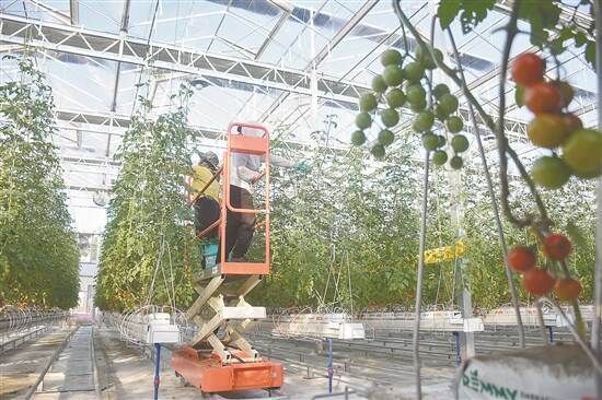 羊城晚报记者日前在走访时看到,该项目坐落于南澳县“美丽乡村风貌带”北线的起点位置,与国家黄花山森林公园相接,风景秀丽。项目现场,只见2座共8000多平方米的玻璃温室高高耸立着,温室内分别种植有樱桃番茄和草莓,通过各种智能感应器和管道、风机等设施调控光照、温度、湿度、养分等,可谓科技感爆棚。
