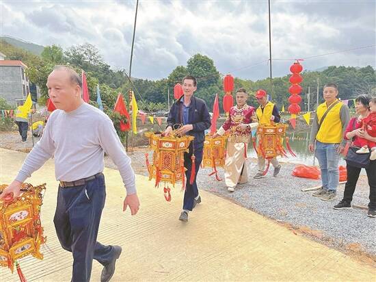 羊城晚报讯 记者戴灵敏报道:在2月19日(正月初十)这天,位于阳江阳春市春城街道林田村委会的黄沙自然村里,一年一度的“黄沙灯会”正在这个小村庄里热闹上演。这是一场为了庆贺本村村民喜得新生儿,祈求安居乐业、人丁兴旺的盛大庆典。同日还举行了“黄沙灯会”县级非物质文化遗产揭牌仪式。