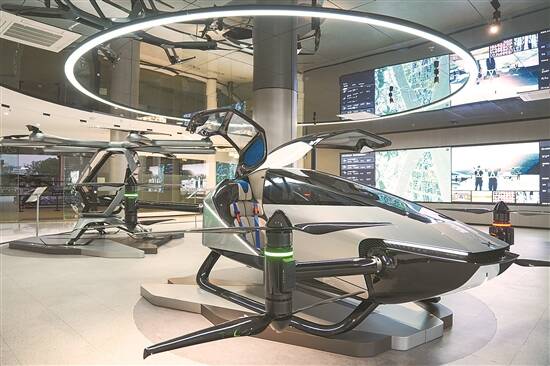 位于广州番禺的飞行汽车公司小鹏汇天展厅内展出了包括“旅航者X2”在内的多款飞行器 羊城晚报记者 梁喻 摄