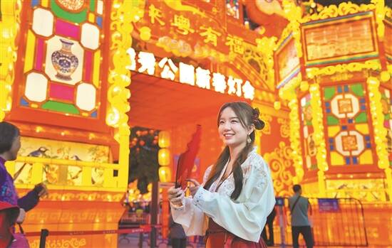 广东素来是传统灯会汇聚之地,各地风格各异的绚烂灯组让岭南文化元素活现于眼前,成为“年味”的最佳氛围组。