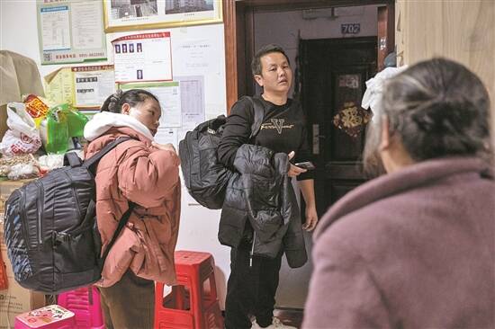与母亲道别,周章盛与妻子踏上了返岗的旅途