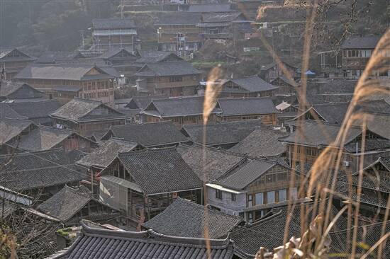 榕江县大利侗寨的样貌,清一色的干栏式青瓦木楼