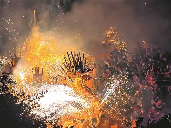 羊城晚报讯 记者丘锐妮摄影报道:2月24日晚,被誉为“中国火龙之乡”的梅州市丰顺县埔寨镇举行传统的闹元宵活动——“烧龙”。