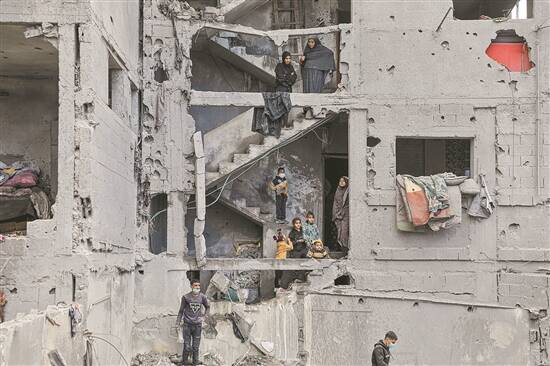 在加沙地带南部城市拉法,巴勒斯坦人查看以军空袭后的废墟 新华社发