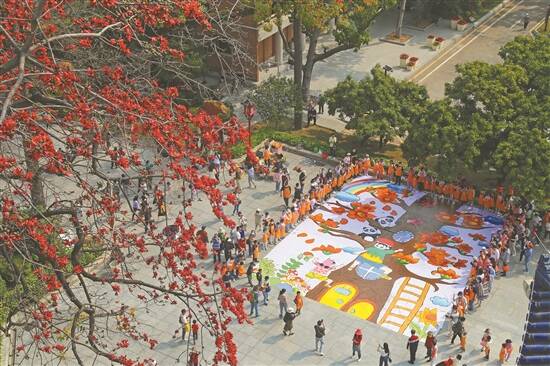 2023年,中山纪念堂350多岁高龄的“木棉王”见证百童同绘英雄花 刘慧鹏 摄
