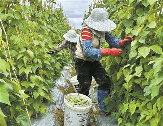 竹迳村的土地流转,带动了附近闲置劳动力的就业,增加了村民和村集体的收入。王华仙说,今年由于油豆花期遭遇低温天气,油豆产量有所下降。根据市场变化,今年油豆的售价为每公斤2.4元到6元不等。油豆是北方人爱吃的蔬菜。采摘好的油豆将被运往公司的冷库进行包装和保鲜,再销往北京和东北地区。
