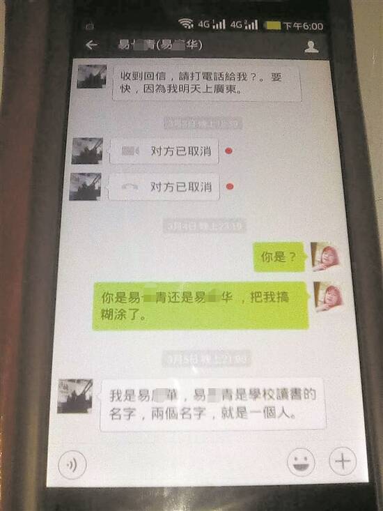 李海玉通过朋友关系对比确认到,易某青和易某华是同一个人。为了让易某华亲口说出自己就是易某青,李海玉与易某华保持微信联系,网聊了三年之久。