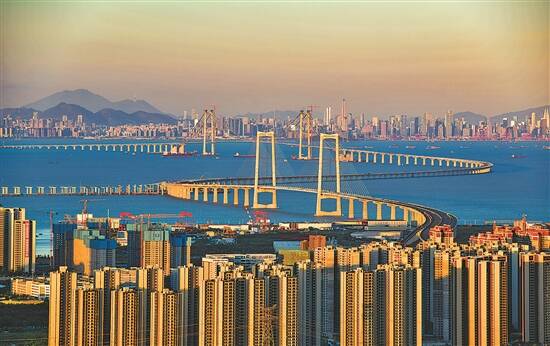 从中山远眺在建中的深中通道及珠江口东岸的深圳市 缪晓剑 摄