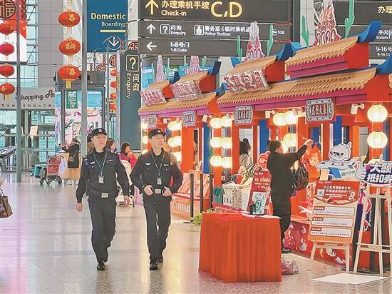 省公安厅机场公安局民警在广州白云国际机场航站楼执勤