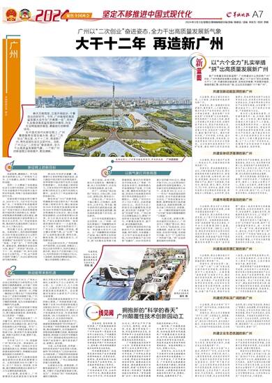 在中国式现代化新征程上,广州着眼服务全国全省大局,提出“二次创业”再出发,大干十二年、再造新广州,率先实现社会主义现代化。当前,广州正以“二次创业”奋进姿态,全力干出高质量发展新气象。一个新广州的新蓝图正徐徐展开,愈加清晰。