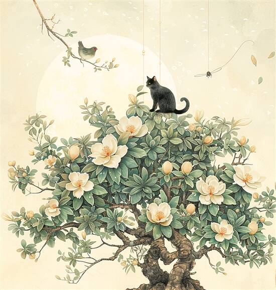 远望这座报刊亭,亭子四周有几株黝黑粗壮的槐树撑起巨大的绿冠,树叶颜色变化丰富,有嫩绿、淡黄、黄绿、翠绿等不同层次的美,仿佛音符在跃动起舞。报刊亭身后是低矮的赭黄色的虎皮围墙,校园内也有些槐树隔墙探出头来,树叶颜色明显要更浅、更嫩一些,不知道是不是因为在校园院墙的庇护下,它们生活得更加滋润。报刊亭正后方那面墙上有一片繁茂的青翠的爬墙虎,它从校内的墙根出发,一路高攀,爬到墙顶短暂停留后,便从墙顶倾泻到了墙外,就像是绿色的瀑布,壮观而雄浑,为赭黄色的围墙增添了许多趣味,也为报刊亭提供了绝佳背景。