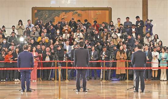 3月4日,全国政协十四届二次会议首场“委员通道”集体采访活动在北京人民大会堂举行 新华社发