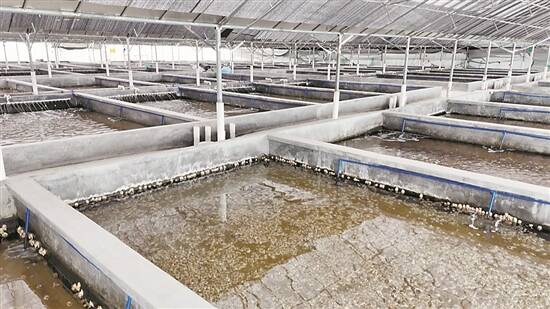 当天下午,记者还走访了上洋镇的一家东风螺专业养殖基地,这里采用工厂化养殖,50多亩大的基地里有60多个养殖池,池内水质清澈见底,一群群东风螺趴在沙子里悠闲地觅食。