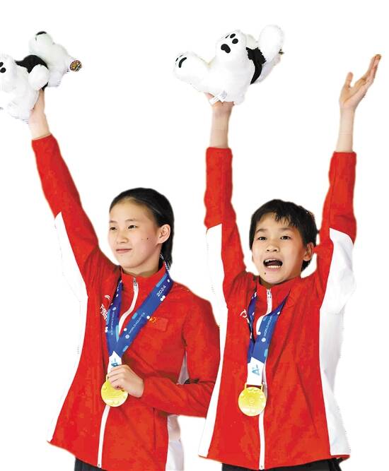 陈芋汐(左)和全红婵在颁奖仪式上 新华社发