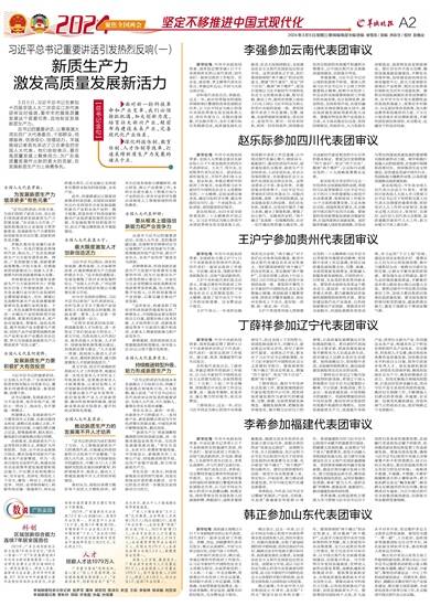 在听取代表发言后,韩正说,李强总理所作的政府工作报告,以习近平新时代中国特色社会主义思想为指导,全面贯彻党的二十大和二十届二中全会精神,贯彻落实中央经济工作会议部署,坚持稳中求进工作总基调,完整、准确、全面贯彻新发展理念,是一份高举旗帜、务实奋进、凝聚共识的好报告,完全赞成这个报告。