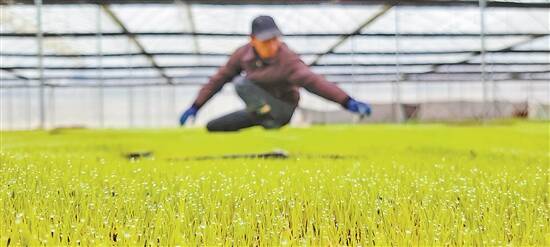 农户在恒温恒湿的大棚内培育秧苗 朱强 摄
