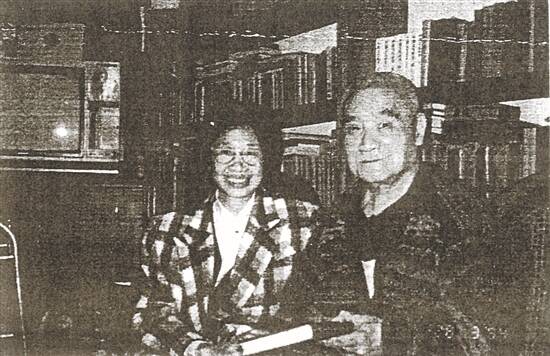 梁嘉彬先生(右)于1994年在台北家中,将1960年版《广州十三行考》委托澳门学者刘羡冰转赠章文钦