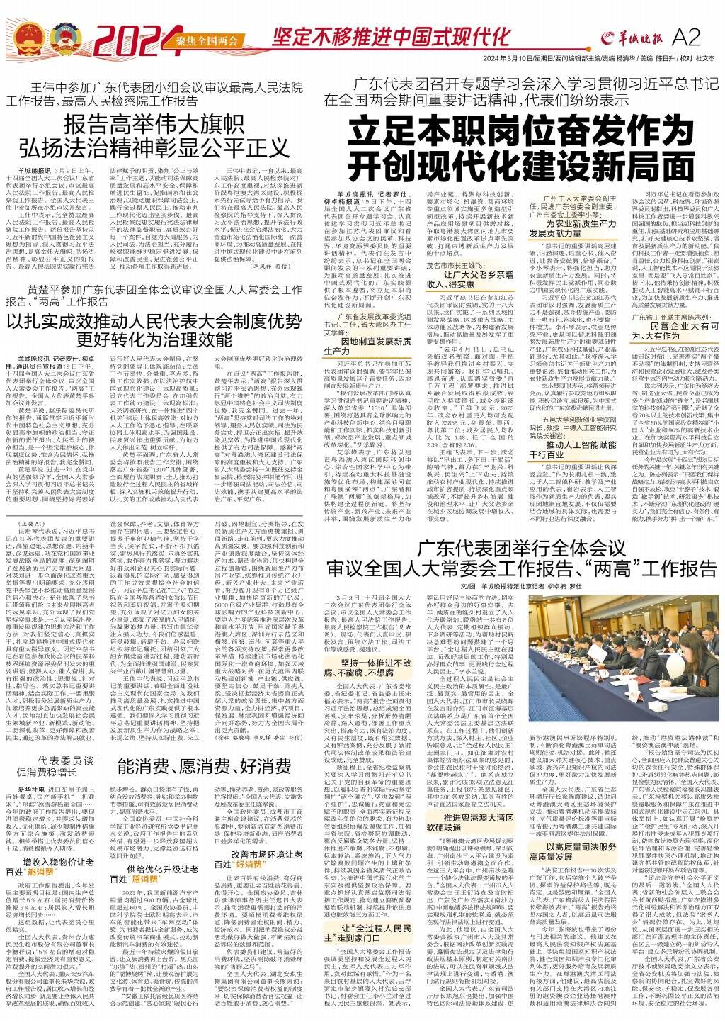 广东代表团举行全体会议审议全国人大常委会工作报告、“两高”工作报告