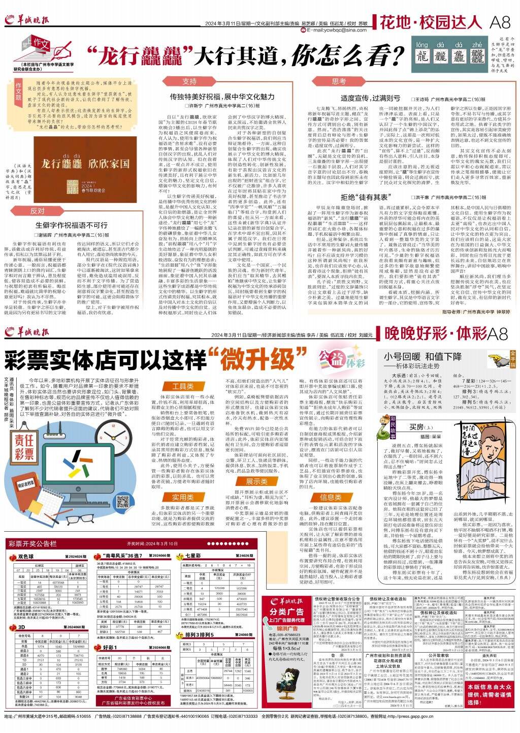 第A08版:花地·校园达人;晚晚好彩·体彩;广告