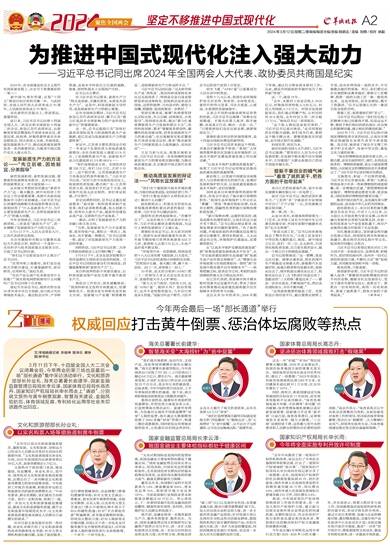 3月11日下午,十四届全国人大二次会议闭幕会后,今年两会的第三场也是最后一场“部长通道”集中采访活动举行。文化和旅游部部长孙业礼、海关总署署长俞建华、国家金融监督管理总局局长李云泽、国家体育总局局长高志丹、国家知识产权局局长申长雨走上“通道”,分别就文旅热与黄牛倒票现象、智慧海关建设、金融风险防范、体育领域反腐、专利转化运用等社会关切话题作出回应。