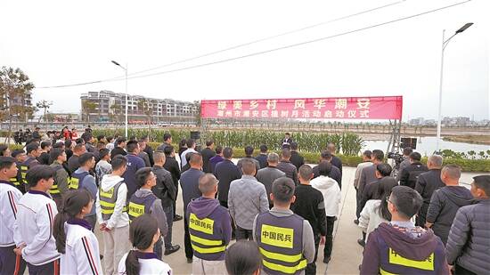 如今,这方水土又迎来了一批新的“绿色卫士”,超过3600株树苗扎根于此。近日,以“绿美乡村,风华潮安”为主题的潮安区植树月活动启动仪式暨现场植树活动在浮洋镇东陇村举行,党政机关工作人员、企业代表、民兵代表、学生代表370人携手植绿,共同奏响县镇村绿化协奏曲。