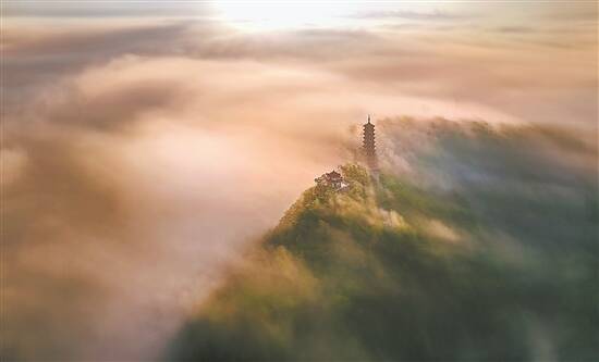 二月二,上春山。浩荡的东风把海上的云团磨匀,挥洒在西江,重峦叠嶂、泉潭平湖、水雾氤氲,勾勒出一幅朦胧的水墨画。羊城晚报《大美岭南》第88站走进江门鹤山大雁山,极目千里,风光无限。