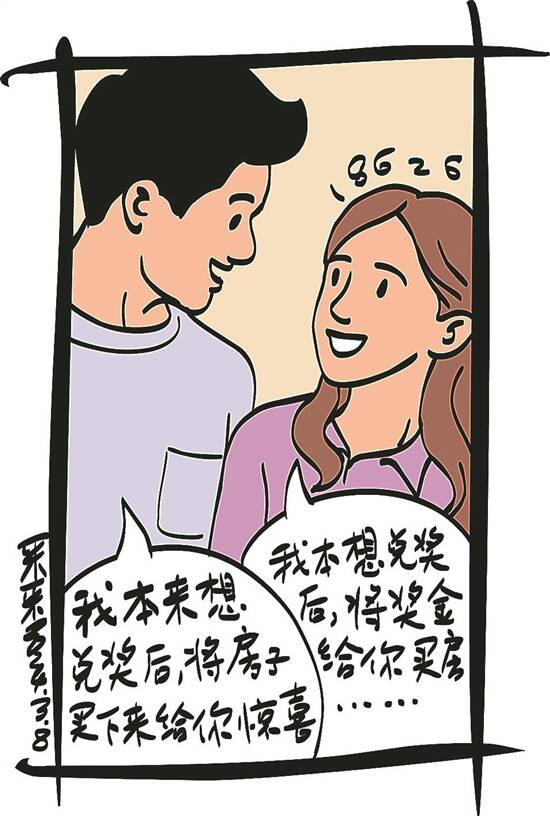 “我本来想兑奖后将奖金给你买房,给你惊喜呢。”