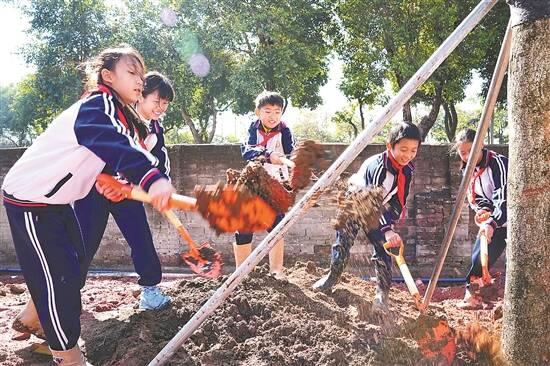 广州荔湾海龙围科创区,孩子们热情高涨参加植树活动