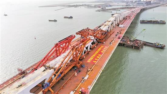澳门半岛至氹仔的第四条跨海大桥合龙 新华社发