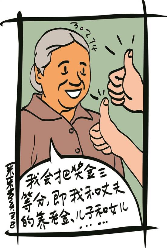 吴嫂偷偷去省城领取了奖金。福彩中心的工作人员开玩笑问她奖金的使用规划,没想到吴嫂对此直言不讳。她说会把奖金三等分,即她和丈夫的养老金、儿子和女儿的婚嫁金平均分配。她的想法赢得在场工作人员纷纷点赞。