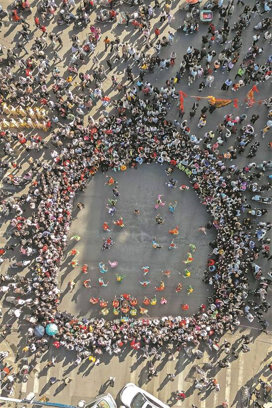 普宁市英歌舞巡游当日,大路上挤满了观众