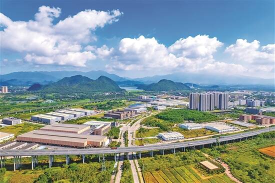 这块由广州、清远两地政府共建,由广州开发区、黄埔区主导开发建设的产业园,位于广东省英德市英红镇、横石塘镇境内,规划面积36.25平方公里,是广东省重点产业转移园区,由省政府赋予地级市经济管理权限,肩负着推动广清一体化和区域协调发展等重大使命。如今,广德产业园共引入项目263个,其中世界500强企业投资的项目4个,中国500强企业投资的项目1个,中国民营500强企业投资的项目2个,投(试)产项目91个,规上企业30家,布局有万洋美妆、中南核心产业、特色文旅、英红科创小镇大健康产业四个特色产业板块。