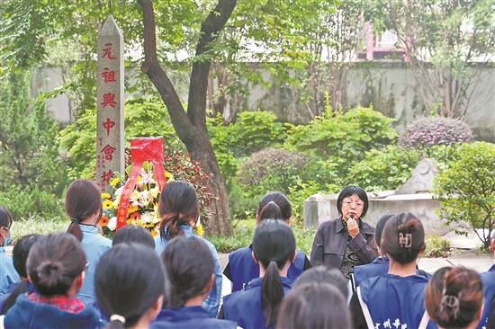 广州市越秀区兴中会坟场,辛亥革命纪念馆馆长欧阳旦霓讲述祭扫活动意义 羊城晚报记者 刘畅 摄