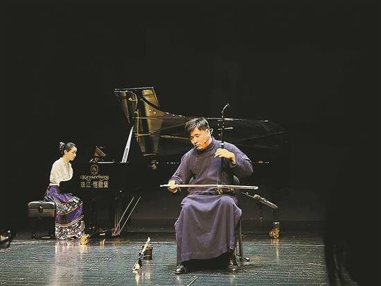 杨恩华(右)和刘清意在广州大剧院演出现场