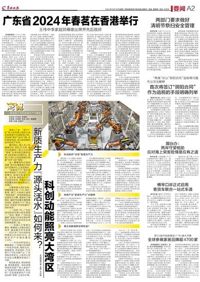 以粤港澳大湾区为例,俯瞰南粤大地,广州、深圳、香港、澳门,4座核心城市“串联成珠”,形成创新驱动发展的主引擎,串联珠三角地区,辐射带动粤东粤西粤北地区,新质生产力“源头活水”在新的“科学的春天”滋长勃发: